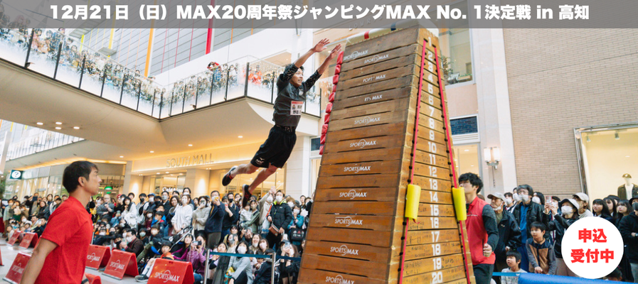 12月21日(日)に高知おまち多目的広場にて開催します 「スポーツマックス20周年感謝祭」 ここで開催します 「MAX20周年祭ジャンピングMAX」申込ス···