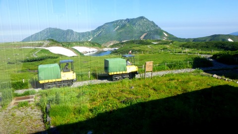 今日も朝からいい天気ですね。昨日は室堂山荘まで帰ってきたので、今日は室堂まで歩くだけ。(^^)遊歩道をこんな車両で荷物を運んでいました。今日は帰···