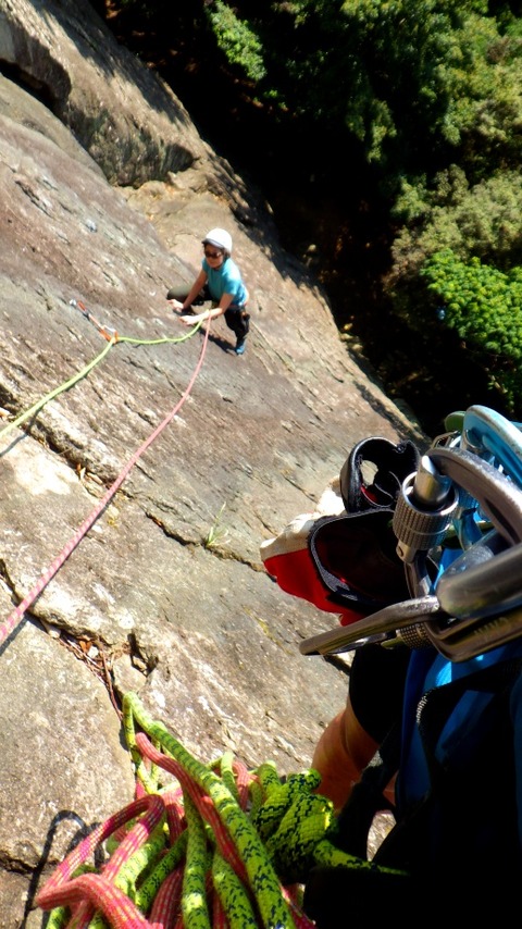 今日は広沢寺でマルチピッチクライミング(中級)講習会を開催。マルチピッチクライミングの手順の実践練習です。今日も気温が高いので早めにスタート···